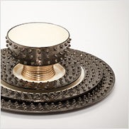 San Francisco based, LUNARES creates a broad range of objects at the highest level of design. each piece hand-crafted in the company's own aluminum foundry, using ancient artisanal techniques. At the helm of it all and the source of every design to emerge from the house, Nima Oberoi presents collections that reflect her rich cultural past and adventurous spirit. Her use of clean lines intensified by surprising additions of whimsical details is an example of her philosophy: embrace life, like design with passion and whim. Breathing spirit and warmth into modernism, Nima stands as a truly individual voice and presents innovative and deeply meaningful collections known for their Glamour and Soul